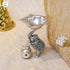 This 925 antique silver diya with a beautiful elephant is a unique centerpiece for your home or spiritual space. The diya showcases a lively elephant holding the lamp on the end of its trunk in a playful manner. This pattern represents power, intelligence, and luck. The calming light of the Diya, paired with the elegant pose of the elephant, establishes a peaceful and uplifting ambiance.