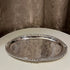 Presenting our elegant silver tray, a classic item that brings an air of elegance to any environment.Elevate your dining experience and add a touch of luxury to your home with our exquisite silver tray. Order yours today and experience the difference."Note: Glasses shown in the picture are not part of the product."