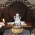 This special idol is made from pure 925 sterling silver. Every detail of Ganeshji, with his big ears and a sweet smile, sitting happily on a lotus flower is made with care. This silver statue is special and also will bring good luck and happiness to your home.